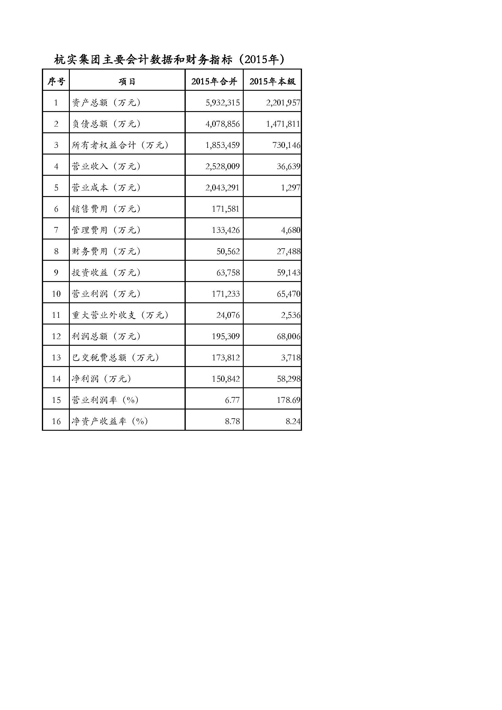 168体育app手机下载主要会计数据和财务指标(2015年)