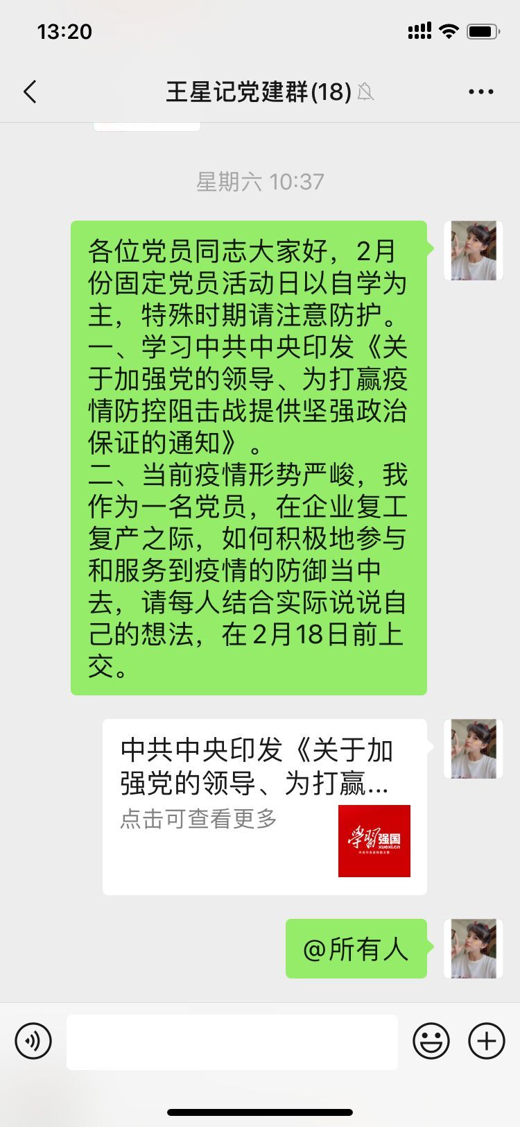2月15日,为响应疫情防控期间不聚集政策,工jbo官网展党总支、弘筑置业党支部依托支部微信群,将学习场地从“线下”挪到了“线上”,开展了传染病防治法线上学习主题党日活动,凝聚起抗击疫情的强大力量。三兴工贸党支部以“支援一线、防控疫情、扎实工作、彰显担当”为主题,在文二市场南区开展月度主题党日活动,党员干部们积极投身抗击疫情一线,共同维护市场的安全与稳定。
